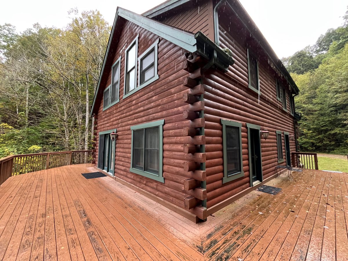 At the head of the fields, tucked up near the woods is a large, well maintained three floor log home. For over 25 years, it has been operated as a seven bedroom guest house with three baths. There is a large open and covered deck taking in the private view of the valley below. The septic permit for this structure is for three bedrooms, thus that is all that can be listed in the MLS, but the practicality of it is that this has more than easily accommodated 20+ people at a time consistently through the years. All furniture, appliances, etc. convey with the house. This is totally “turn-key”, “move in ready”!