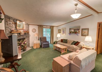 Around the corner from the field is the “Gatekeeper’s Cottage”. This is a very comfortable and well maintained three bedroom, two bath manufactured home tucked up in the woods. It has a fireplace along with central heat and a/c. All furnishings come with it.