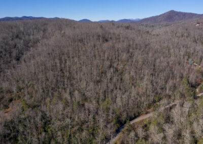 These 23 acres are located just ten minutes south of the mountain town of Black Mountain. Access is excellent as it enjoys paved road frontage. Bird Creek Estates Road is an asphalt surfaced road in good condition and flat gradient from Old Fort Road. There are no improvements on this property. It is 100% wooded mountainside. It features two very gentle knolls for building sites, although the topography to get up to those sites is rather steep. There is a small creek branch on one side of the property. No private restrictions and open use zoning mean you are pretty free to build what you want. There is an electrical power line at the property’s edge, though it may be ten feet or so short of the property line.