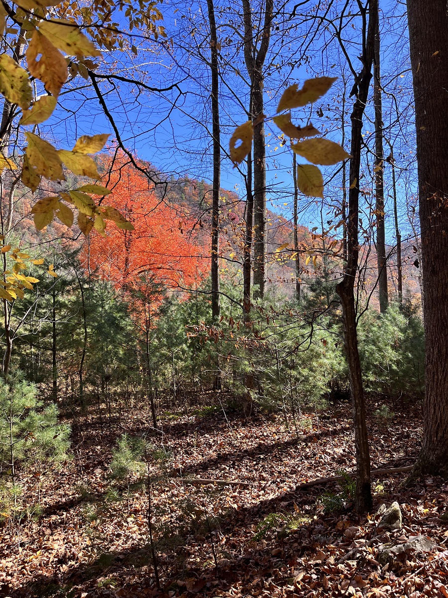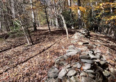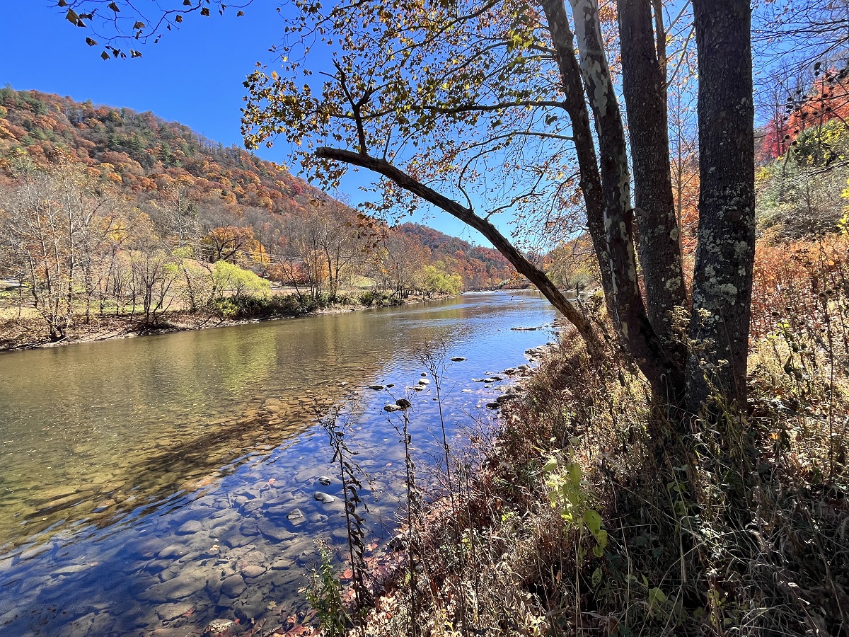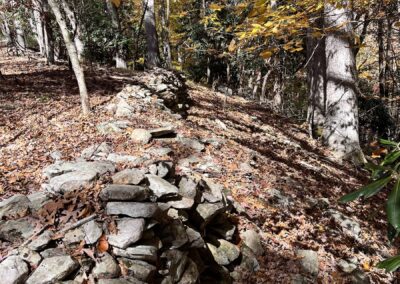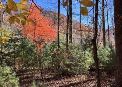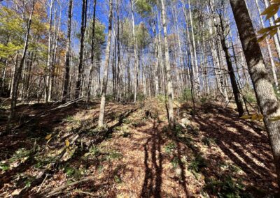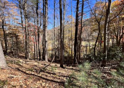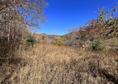 On the lower section of the property, you’ll find several flat building spots that long ago were garden areas. An old logging road meanders up from these spots to the rock wall. From up above, take your pick of home sites that will offer both mountain views and views of the Nolichucky River below. Its simply amazing. This private right-of-way that provides access also provides access to the Nolichucky River. NOTE: the property does not front on the river, but the right-of-way does and, that grants one access to step into the river to fish or go canoeing.