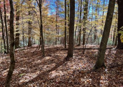 These 61 acres have outstanding topography that is ideal for building. In fact, there are a couple of old farm buildings remaining on the property. A small creek branch flows through the property as well as a spring. You can easily walk or drive up the old driveway into the property and find yourself on a very large, gently laying ridge top encompassing several acres. It is exceptionally gentle, and many years ago was pasture. An interesting feature is a dry stacked stone wall several hundred feet in length along the roadbed. This is from days gone by. Continue on up into the property and you come to the USFS property. Step across the line and you are on a 9,000+ acre forest preserve. Its like owning your own national forest.