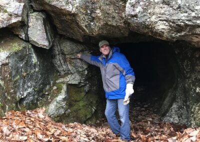 The mine shaft was/is carved out of sold rock and extends approximately 100′ laterally into the mountain. Its flat and easy to navigate with a larger circular “room” of about ten to twelve feet diameter toward the rear. It was dry and felt solid and secure. No evidence of mining tools or animals, but simply bare rock and tall enough to stand up straight. Who knows what the miners were after, and why would they choose this particular spot? Whatever their purposes, this feature is unique and provides a great story along with possibilities for secure storage of materials. I wouldn’t want to inhabit it for more than a brief visit, but it conjures up images of Tom Sawyer and Becky Thatcher.