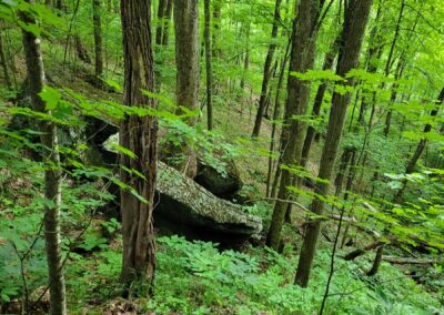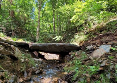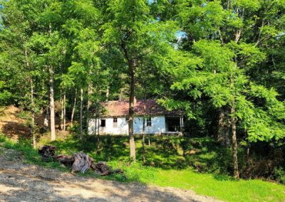 Aside from this feature, the 87 acres sit at the end of a paved state road about five minutes from the small mountain town of Bakersville. It then rises up to a gentle ridge including Ivy Knob which features a broad gentle knoll offering 360 degree views. There is a an established roadbed that leads to the higher elevations making most of the property accessible. An old house near the lower section is “as is” and could possibly be brought back to life, but one nice thing about this house is that there is electrical service on the property.