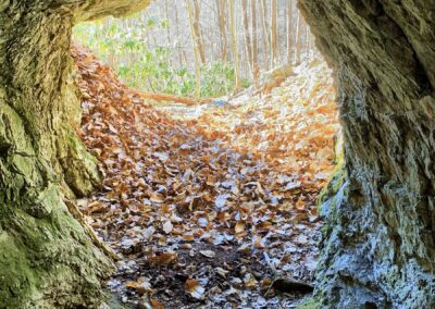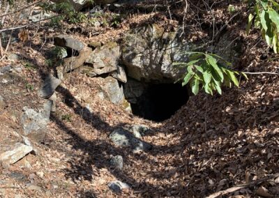 With all that said, it should be no surprise to discover a mine shaft or cave in these mountains. I remember the first time I saw this cave opening. After hiking along the mountainside, staying on contour, I came around a rock formation and noticed a change in the ground surface. It appeared to me to be ground up mine tailings, left overs from when a mine is bored. Sure enough, there in front of me was a dark opening straight into the rock face about six feet or more in height and four to five feet wide. I wasn’t prepared (silly me), so I only had the light on my cell phone and myself and the property owner made our way in after tossing a couple of rocks inside to ensure nothing was waiting to surprise us.