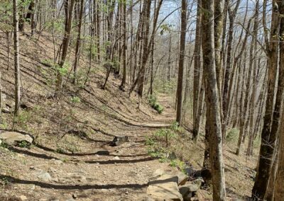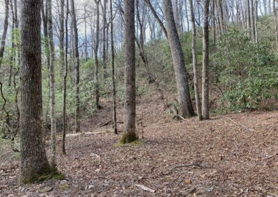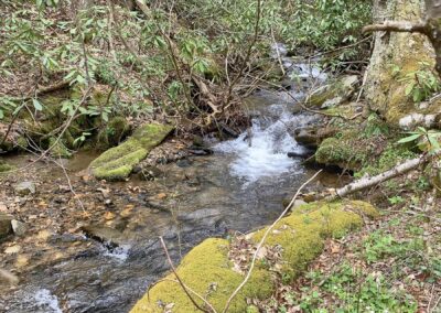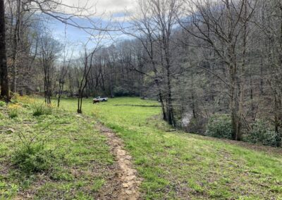 In addition to the water on this property, it has approximately ten acres of gently laying pasture. Some of this is down near the bottom while the majority is at higher elevation. The location of the old homestead still has an old barn and the views from this upper pasture are outstanding. They face the east and one can easily see Table Rock, Hawksbill Mountains and even the iconic Grandfather Mountain in the distance. The pastures provide one with multiple easily accessible sun-drenched building sites with outstanding views and the sound of rushing water below. There are also several wooded areas with very gently laying topography that stretch out on finger ridges that can make for more home sites nearly as flat as any you’ll find in the low lands. A well established trail network throughout the property leads to numerous gently laying wooded areas and knolls that are ideal for building with mountain views and views of Grassy Creek. Its simply a stunning property.