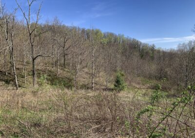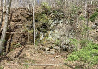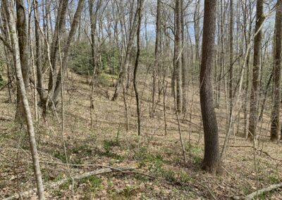 The acreage is easily accessed via a paved state maintained road, then a very short (100′) jaunt over a deeded right-of-way to the property line. Once on the property, there is a well defined usable farm road that courses its way through the entire 97 acres, providing access to all points of interest. Many years ago, there was a homestead on the property (old chimney remains) and this road was used for coming and going. One of the family sellers remembers riding up this road as a little girl. With a little effort, it can be made back into a navigable drive for a standard passenger vehicle as the grade of the roadbed is very gentle the entire way. Click here for an interactive map.