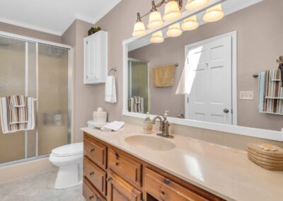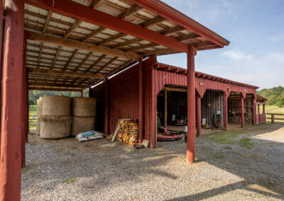 Down below the house, you’ll find a very large, well built and maintained barn with full loft. There are four horse stalls of 14′ x 12′, each with runouts into a paddock. A tack room on one end to store lockable materials and the opposite side of the barn is an open storage area. Step up to the loft and the possibilities are endless. Of course power and water at this location. Across from the barn is a very large, high clearance equipment shed with multiple bays for parking vehicles such as a 40′ RV. On the other side of the barn, you’ll find a fenced warm up arena and warm up circle that are both illuminated for nighttime riding. Just below this is a regulation sized dressage arena that could be the foundation for another barn, house, tennis court, greenhouses…..you name it!
