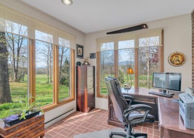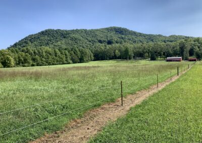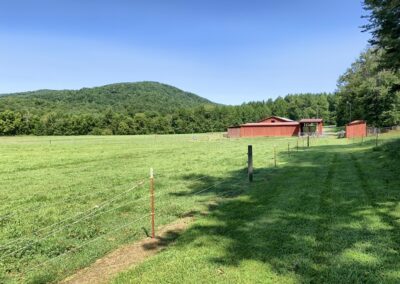 On the house side of the pastures, the land rises ever so gently to a cleared knoll with outstanding commanding views of the surrounding mountains. Much of the mountains in view are in conservation, thus protecting the view. There are several acres in this upper field that are flat and inviting for a new home with a well and underground power having already been installed at this location. Totally private and hidden from view. A thick stand of well managed woodlands lay between this field and the house down below. A walk through these woods is like a dream in that the forest floor is free of briars and bushes, making for a very scenic setting, all the while having very gentle topography. A trail network winds its way through the woods and is easy enough for bicycles.