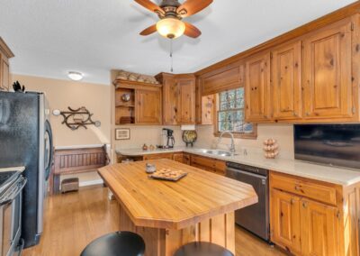 Then nestled up just inside the wood line you’ll find the owner’s residence. This is an attractive brick ranch home over a full basement with basement garage. Having a brick exterior means low maintenance, and the roof is just a couple of years old. Main floor living will be found with two bedrooms and two baths on this level along with the living room, kitchen, laundry and a sun drenched sunroom with wood stove. Of course there’s a wood burning fireplace in the living room as well. Venture downstairs and you’ll find a third bedroom with full bath and another den complete with a propane log stove. A wide covered front porch invites you to sit out in the evening and watch the fireflies or the many deer in the morning as you sip your coffee.